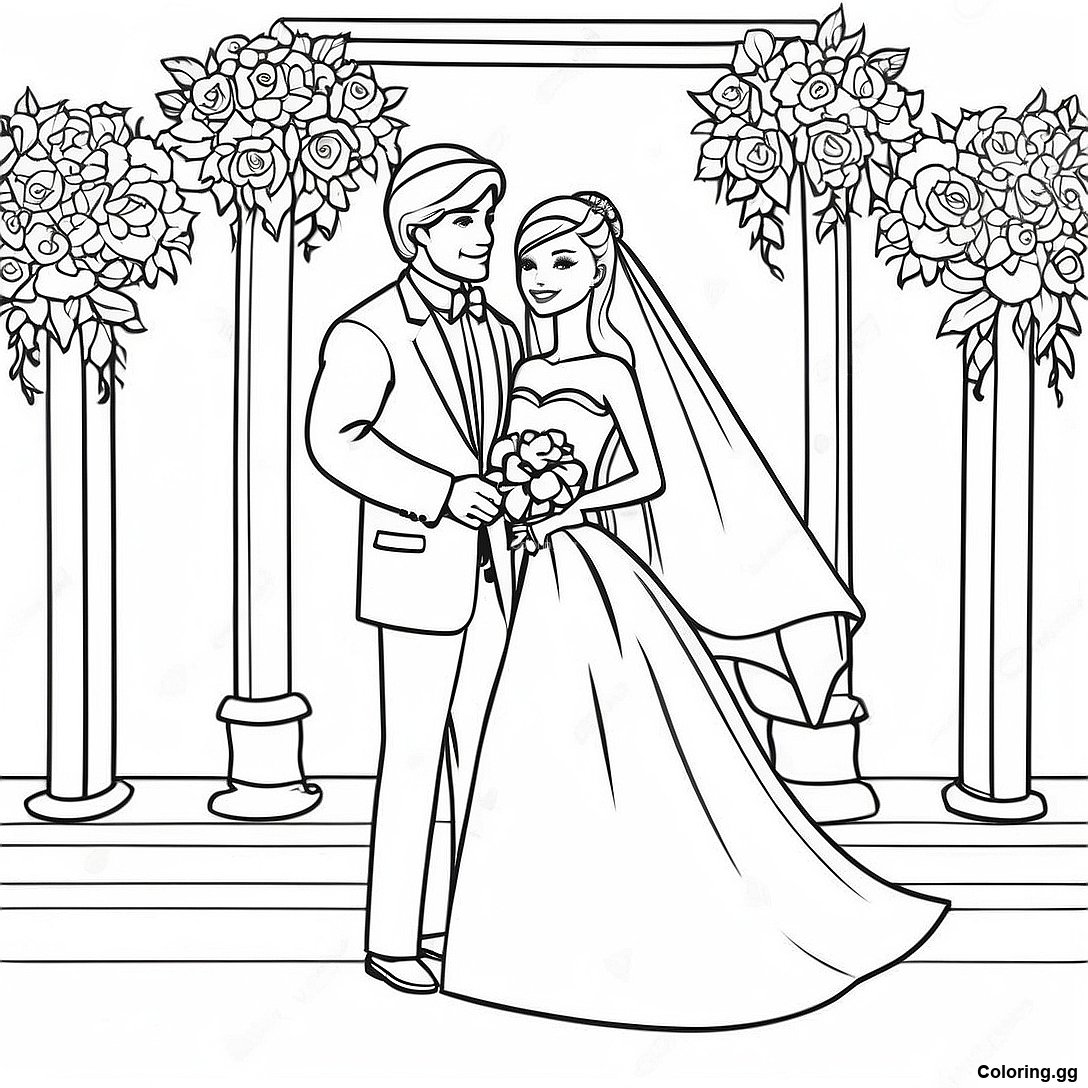 下载 芭比和肯的婚礼场景涂色页 的可打印 PDF