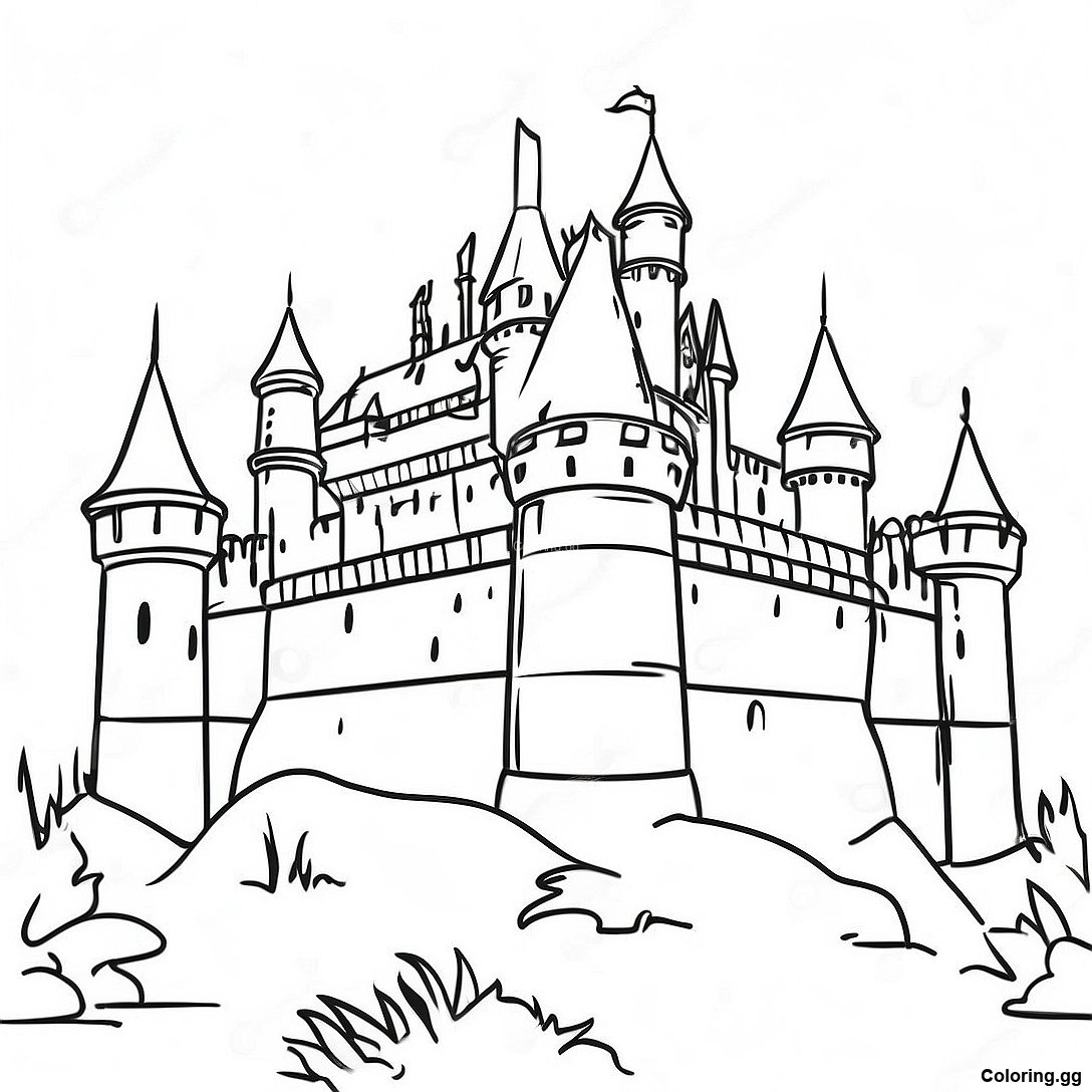 下载 宏伟的城堡涂色页 的可打印 PDF