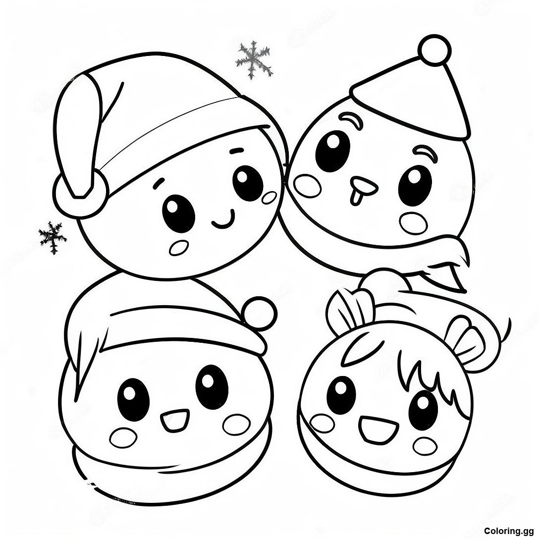 下载 可爱的动漫角色与圣诞帽涂色页 的可打印 PDF