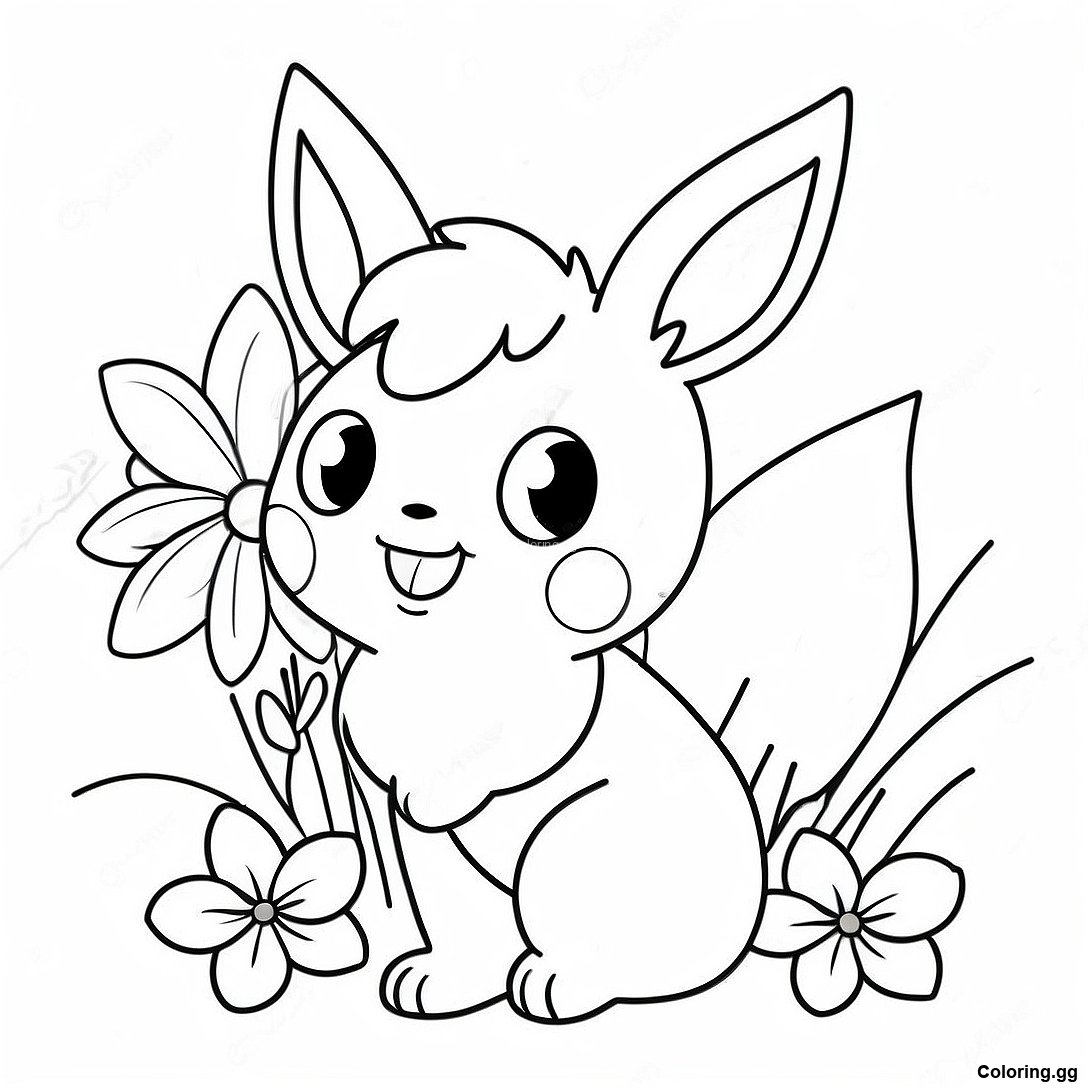 下载 可爱的伊布与花朵的涂色页 的可打印 PDF