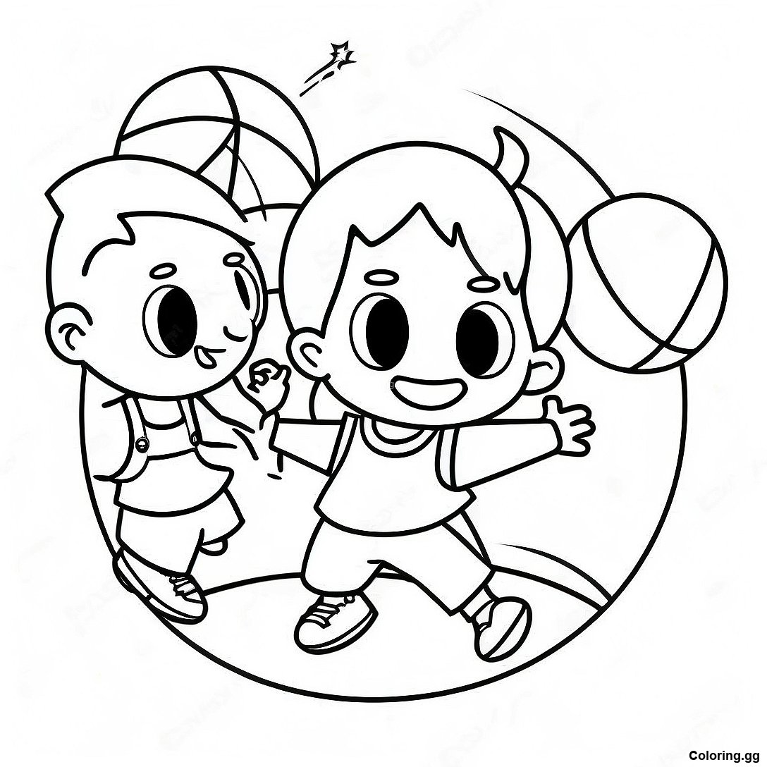 下载 快乐的孩子们打篮球涂色页 的可打印 PDF
