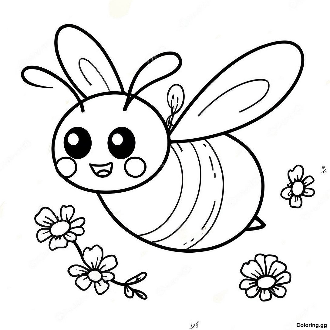下载 快乐的蜜蜂飞翔涂色页 的可打印 PDF