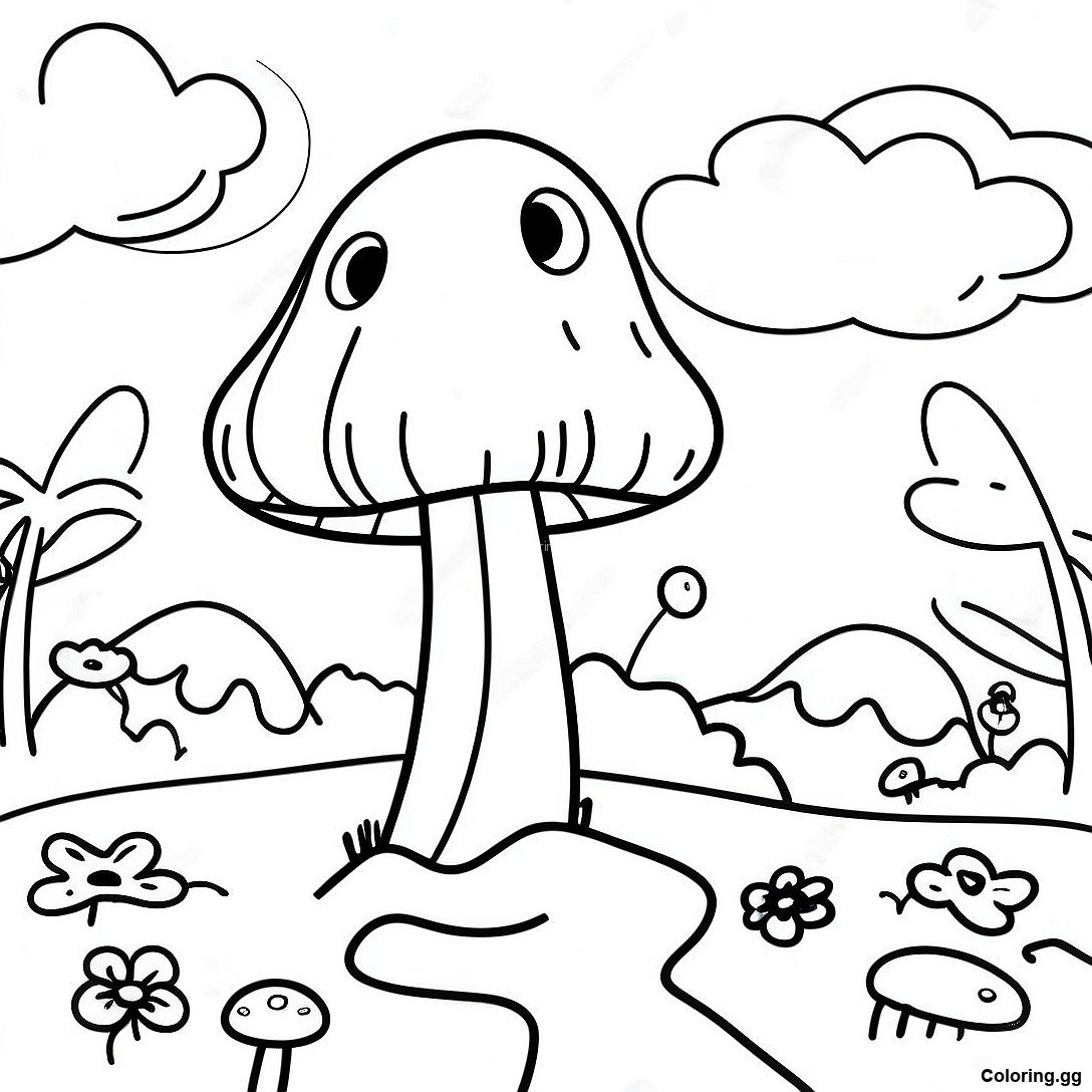 下载 时髦的蘑菇风景涂色页 的可打印 PDF