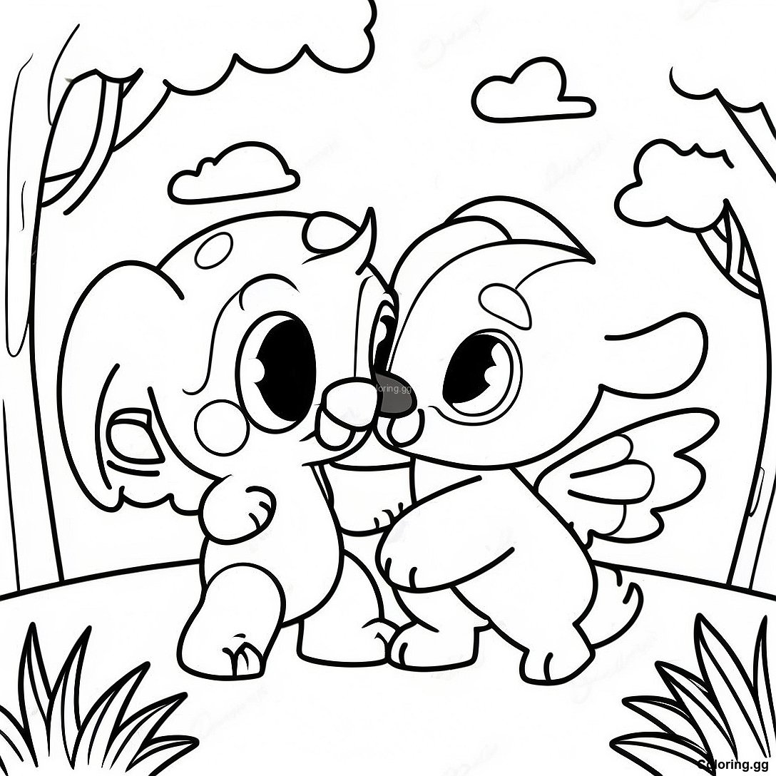 下载 顽皮的史迪奇和安吉尔在公园涂色页 的可打印 PDF