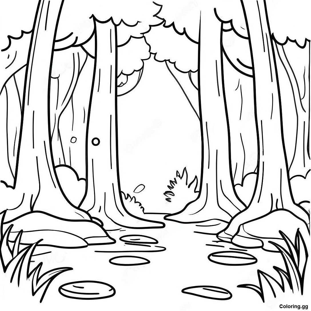 详细的森林风景涂色页