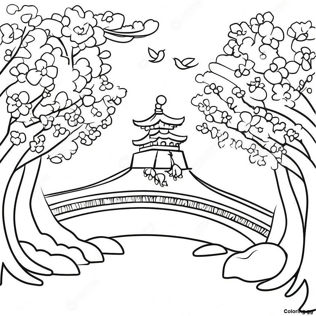 下载 樱花节场景涂色页 的可打印 PDF