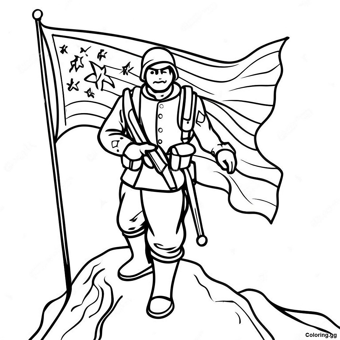 下载 勇敢的士兵举旗涂色页 的可打印 PDF