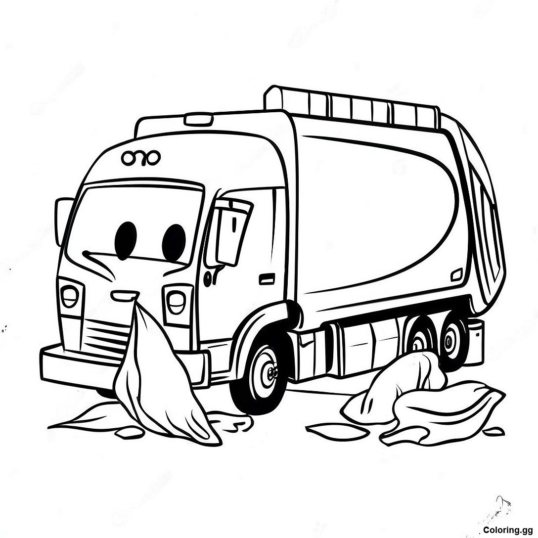下载 友好的垃圾车收集垃圾涂色页 的可打印 PDF