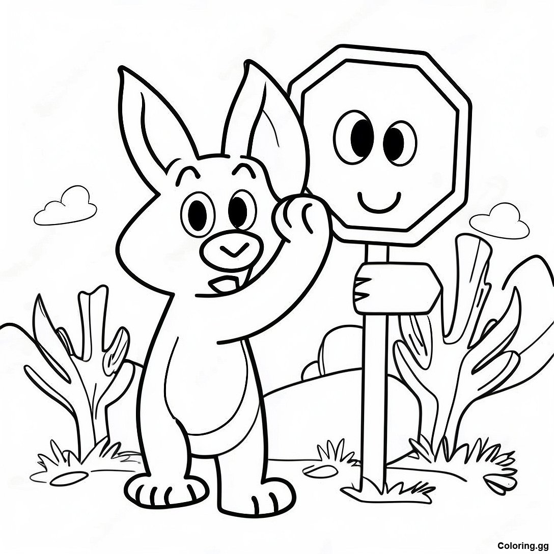 下载 有趣的动物角色停车标志涂色页 的可打印 PDF