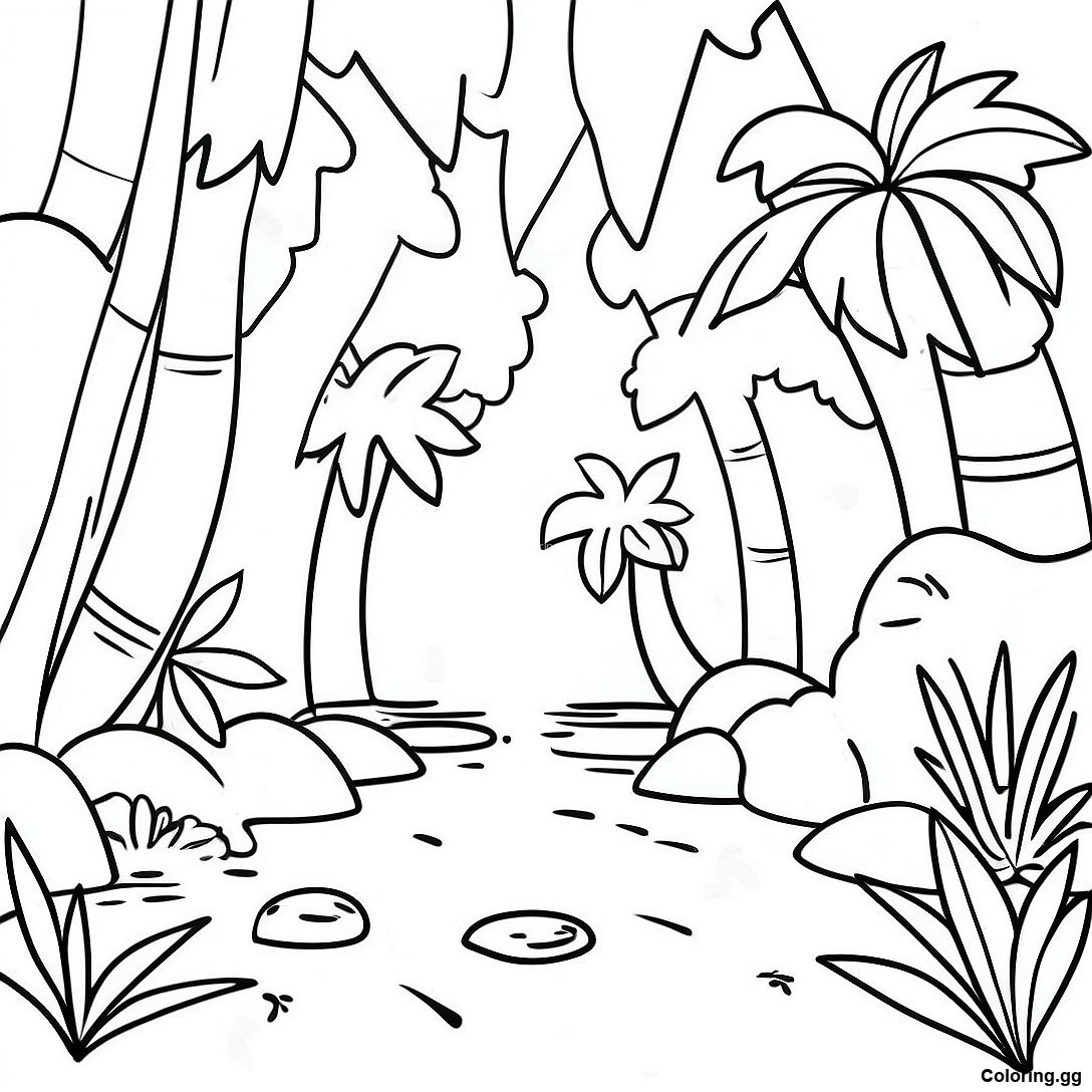 下载 郁郁葱葱的热带雨林涂色页 的可打印 PDF