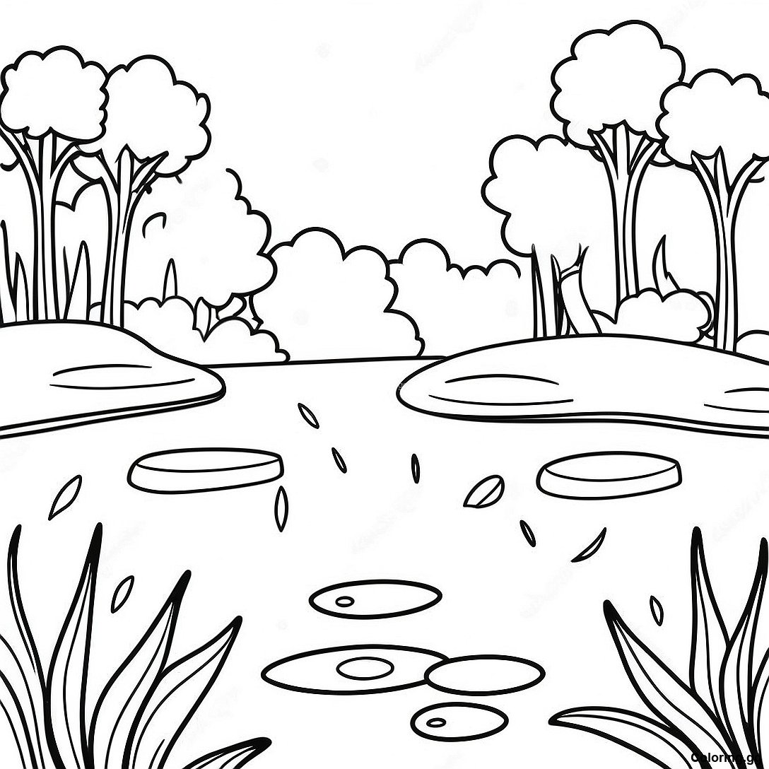 下载 宁静的池塘场景涂色页 的可打印 PDF
