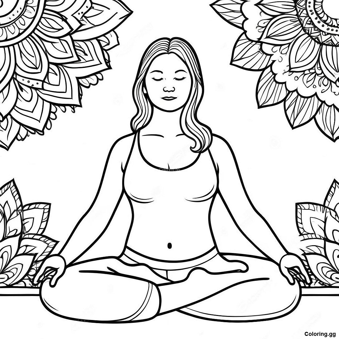 下载 宁静的瑜伽姿势涂色页 的可打印 PDF